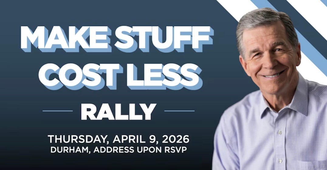 Rally with Gov. Roy Cooper for his Make Stuff Cost Less Tour in Durham. Join Governor Cooper in Durham for our Make Stuff Cost Less Rally as we rally around lowering costs and delivering for families across our state! We are also collecting diapers, baby wipes, and other unused supplies at the rally to support local families in our community, bring what you can and be part of the action.